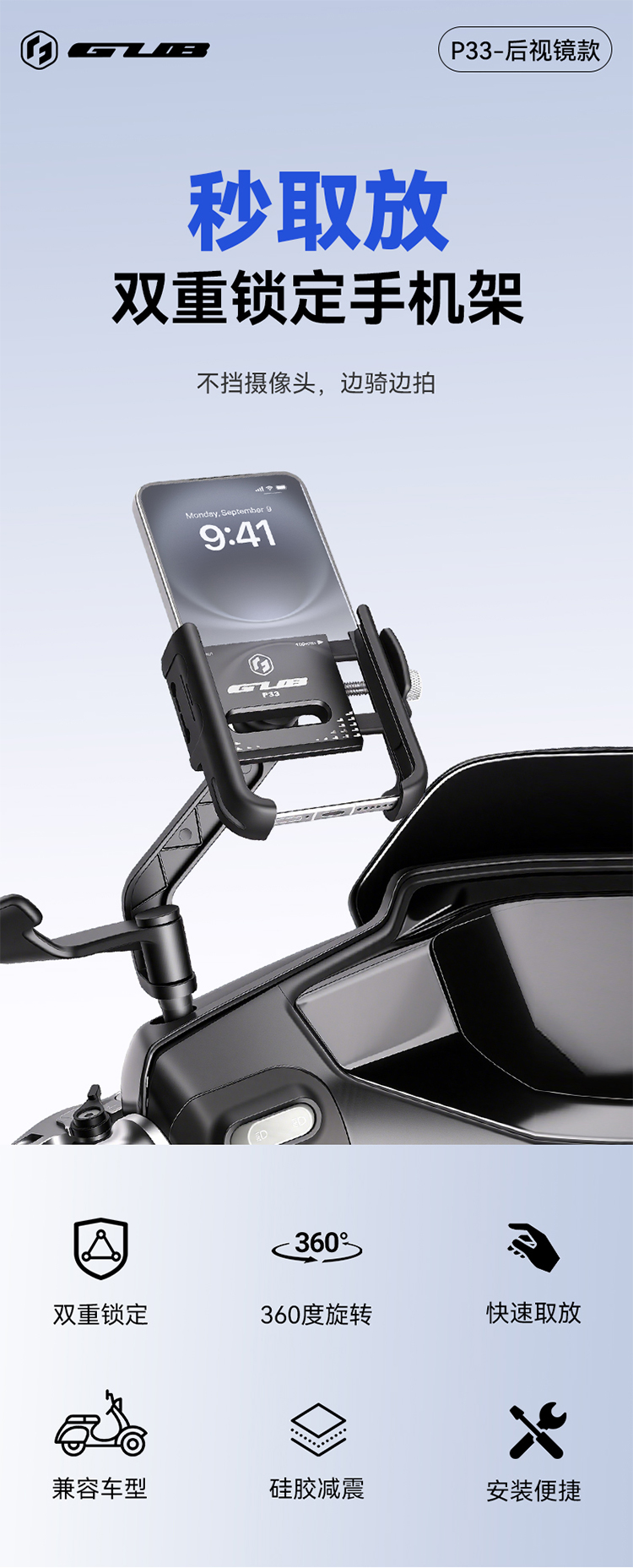 名称:GUB P33 快拆式手机支架(后视镜款)