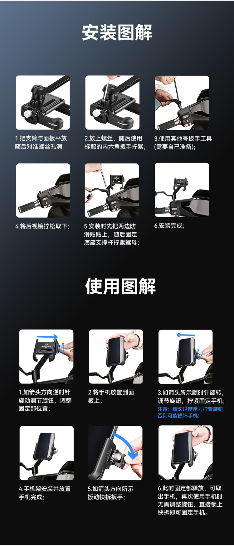 适用:带后视镜安装孔的摩托车/电动车等