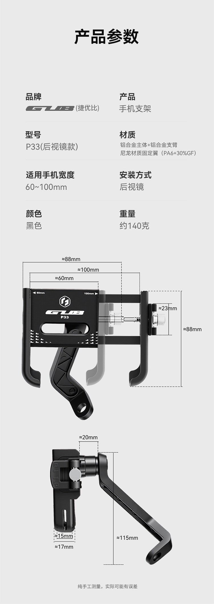 名称:GUB P33 快拆式手机支架(后视镜款)